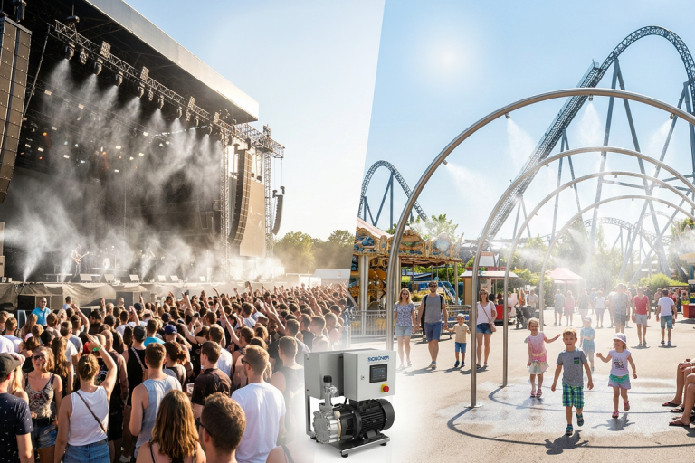 Wenn Temperaturen steigen und Besucherzahlen hoch sind, wird Komfort schnell zum entscheidenden Erfolgsfaktor. Unsere Hochdrucksprühbefeuchtungssysteme bieten eine innovative, effiziente und nachhaltige Lösung zur gezielten Abkühlung großer Außenbereiche – ideal für Freizeitparks, Festivals und Open-Air-Veranstaltungen.